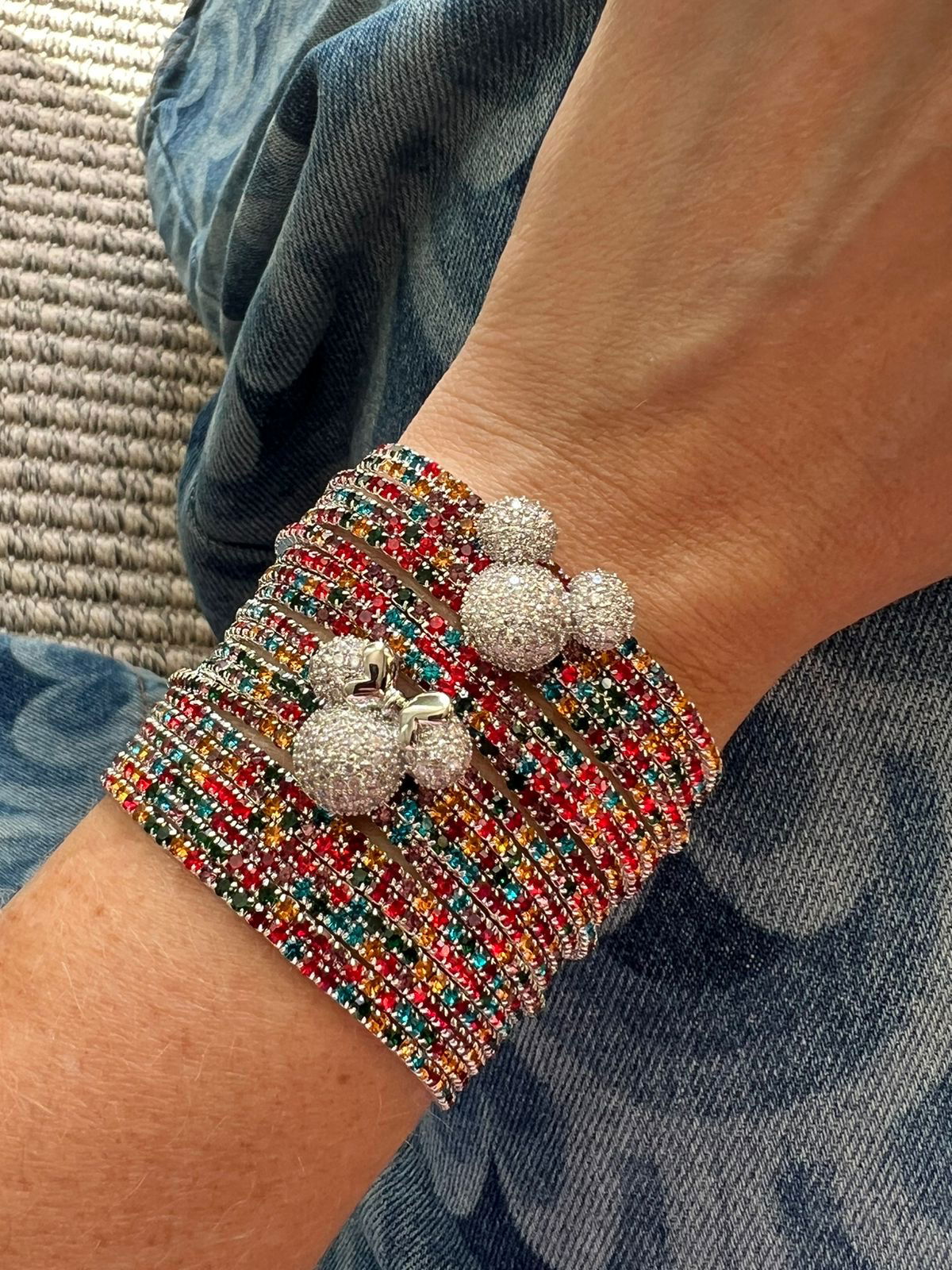 2. Kit de Pulseira Biju Fina Strass Colors (20uni) em Ródio Branco