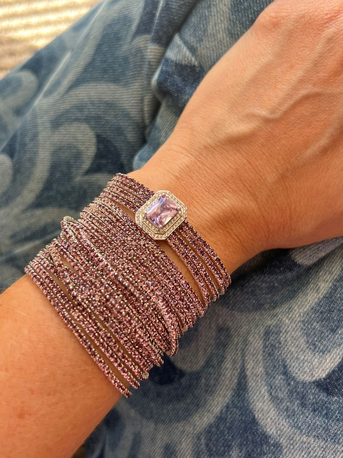 Kit Pulseira Biju Fina Strass Rodolita (20uni) em Banho de Ródio Branco
