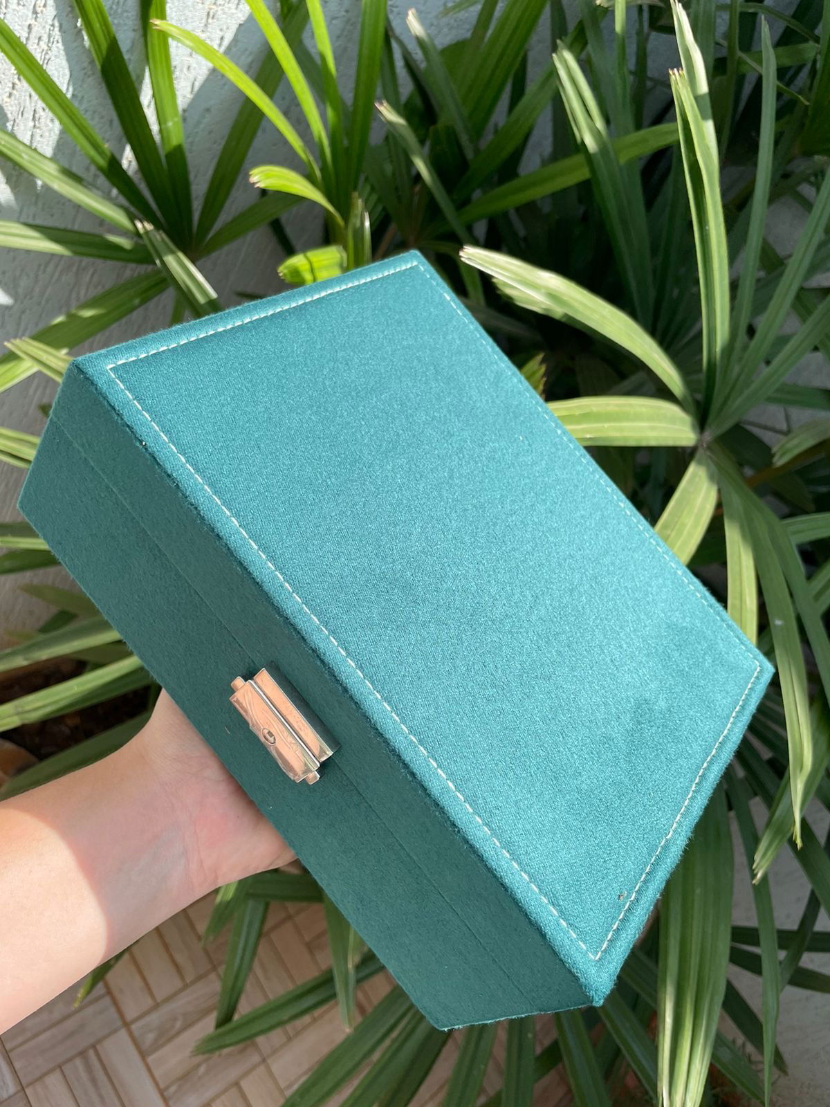 Maleta DuplaVeludo Verde Escuro : Verde Facebook X Pinterest WhatsApp : - + : OK × : 1x R$ 0,00 : R$ 0,00 × : Altura : 8.5cm Comprimento : 23cm Largura : 17cm