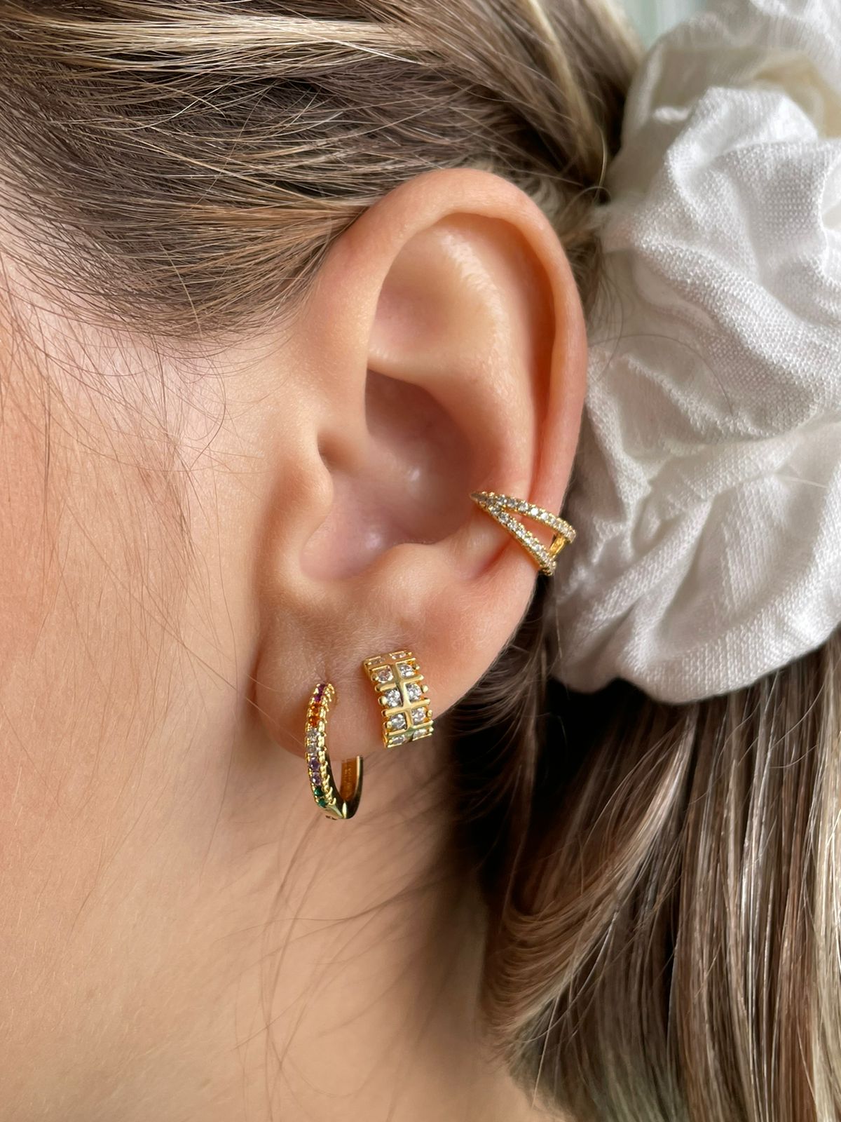 2. Piercing Fake com Duas Fileiras de Zircônia em Banho de Ouro