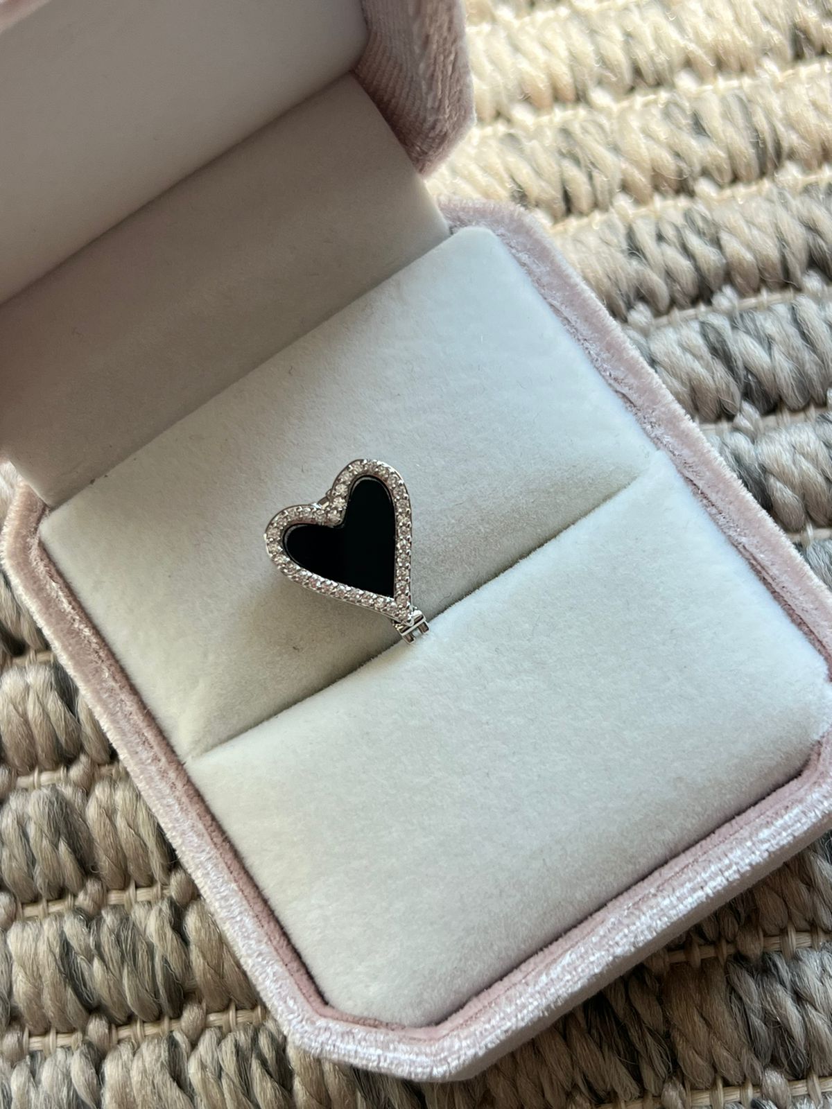 Pingente Coração com Madrepérola Black (Para Pulseira) em Banho de Ródio Branco