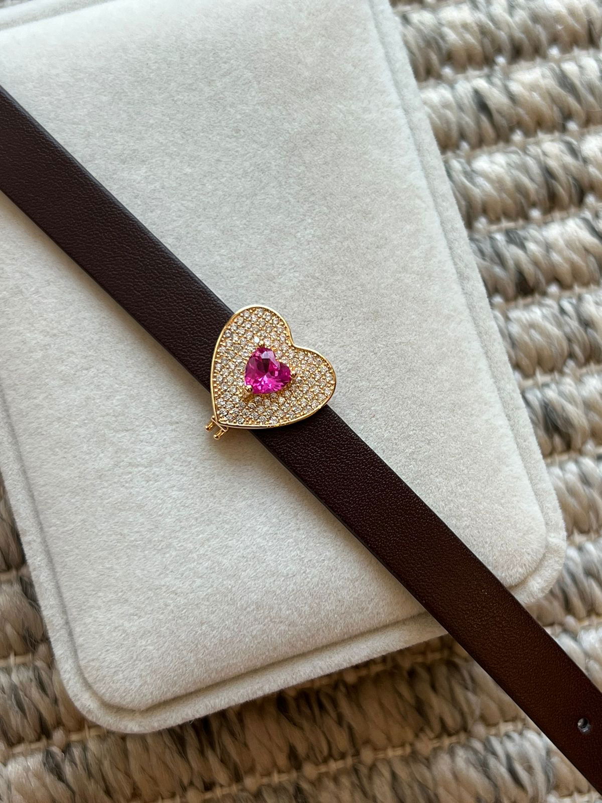 3. Pingente Coração com Zircônia Cristal e Pink (Para Pulseira) em Banho de Ouro