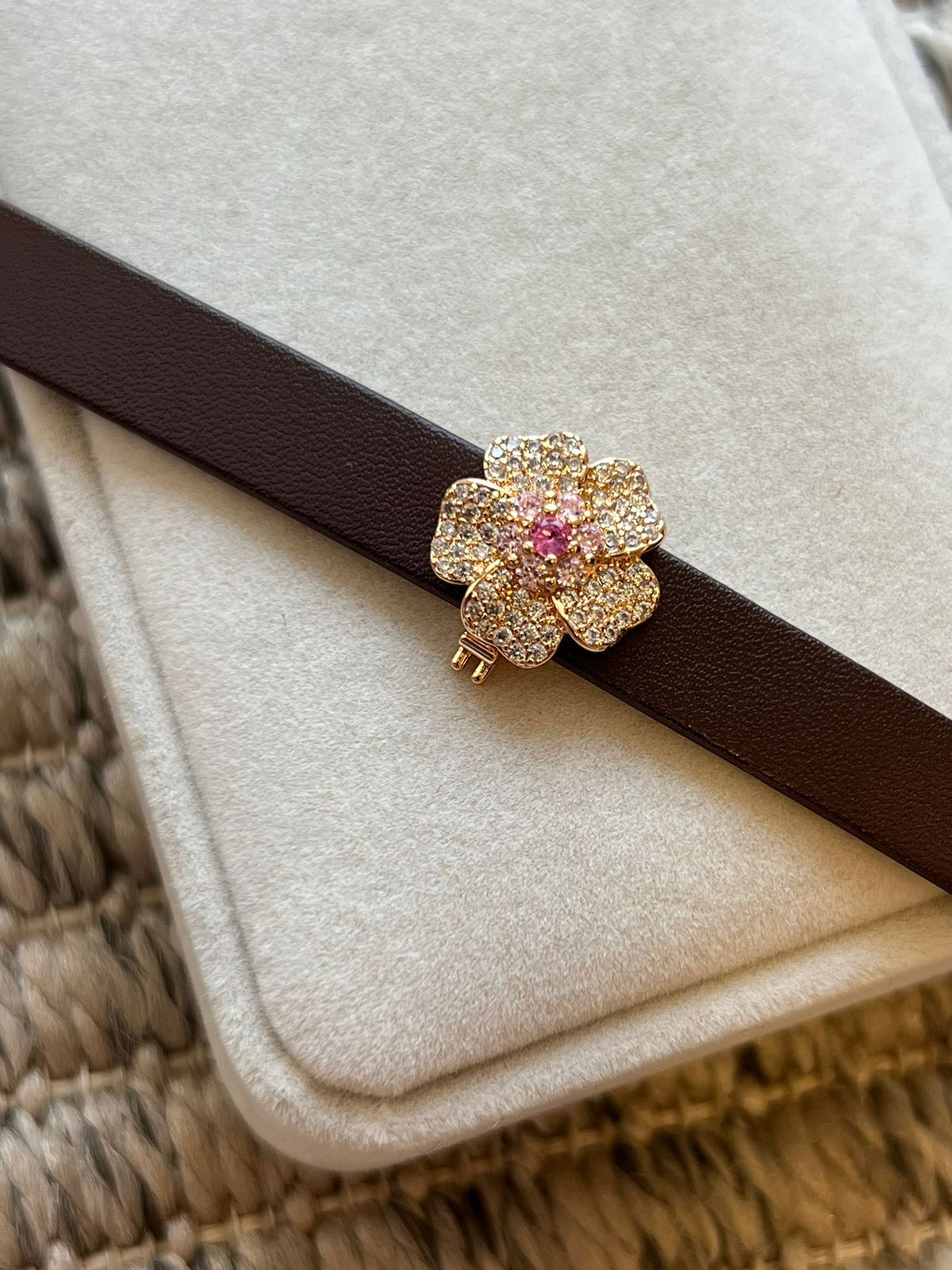3. Pingente Flor com Zircônia Cristal e Rosa (Para Pulseira) em Banho de Ouro