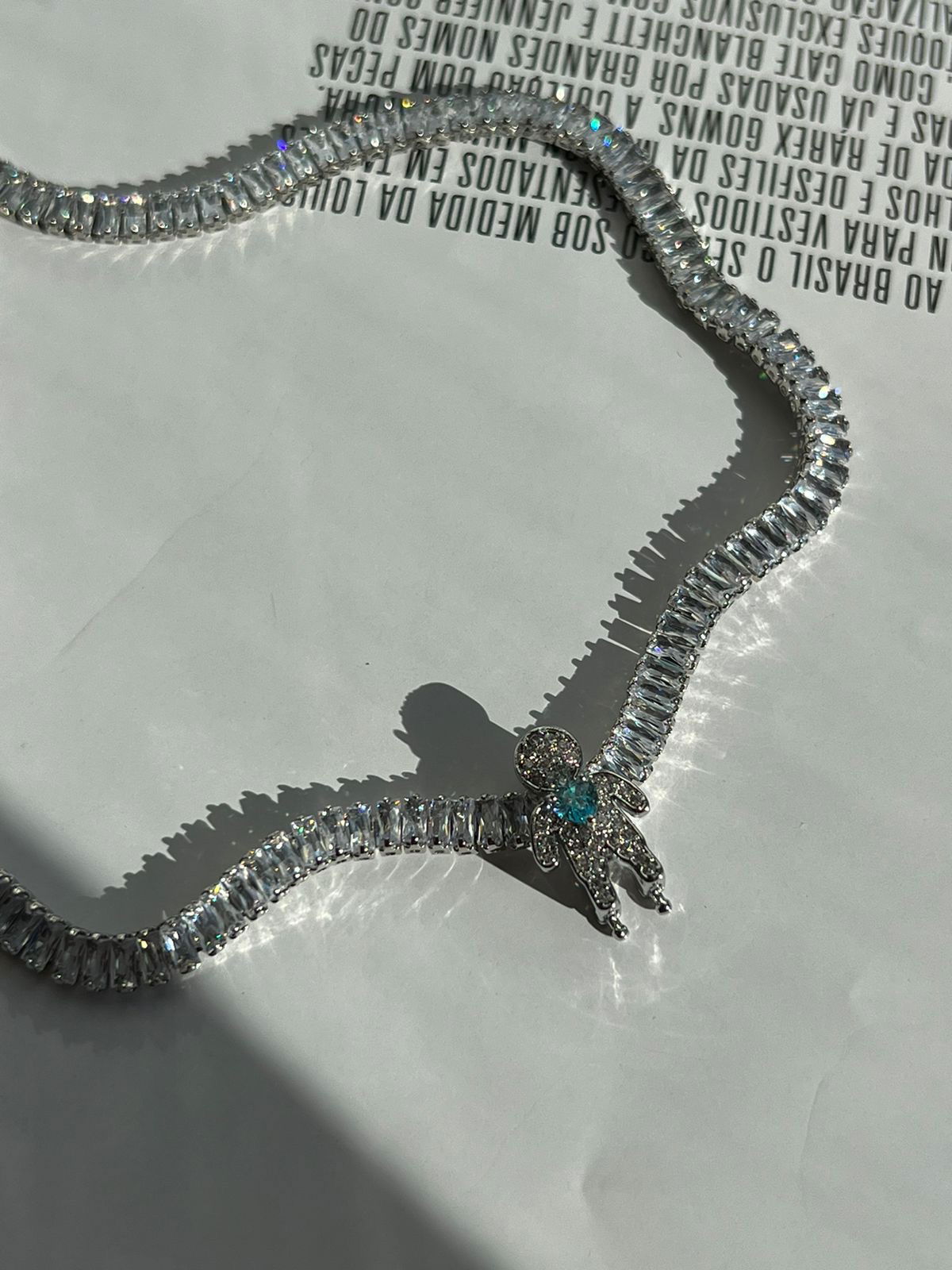 2. Pingente Menino com Zircônia Cristal e Água-marinha (Para Pulseira e Riviera) em Banho de Ródio Branco