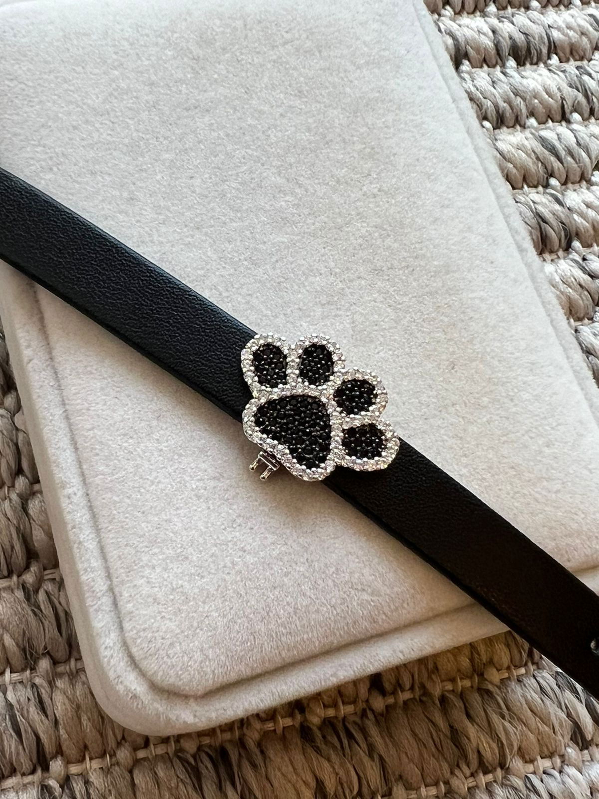 3. Pingente Pata com Zircônia Cristal e Black (Para Pulseira ) em Banho de Ródio Branco