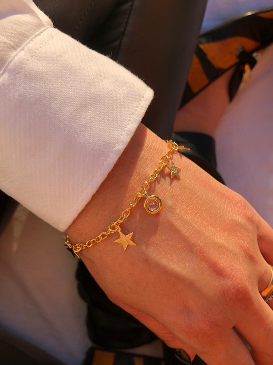 2. Pulseira com Estrela e Zircônia em Banho de Ouro