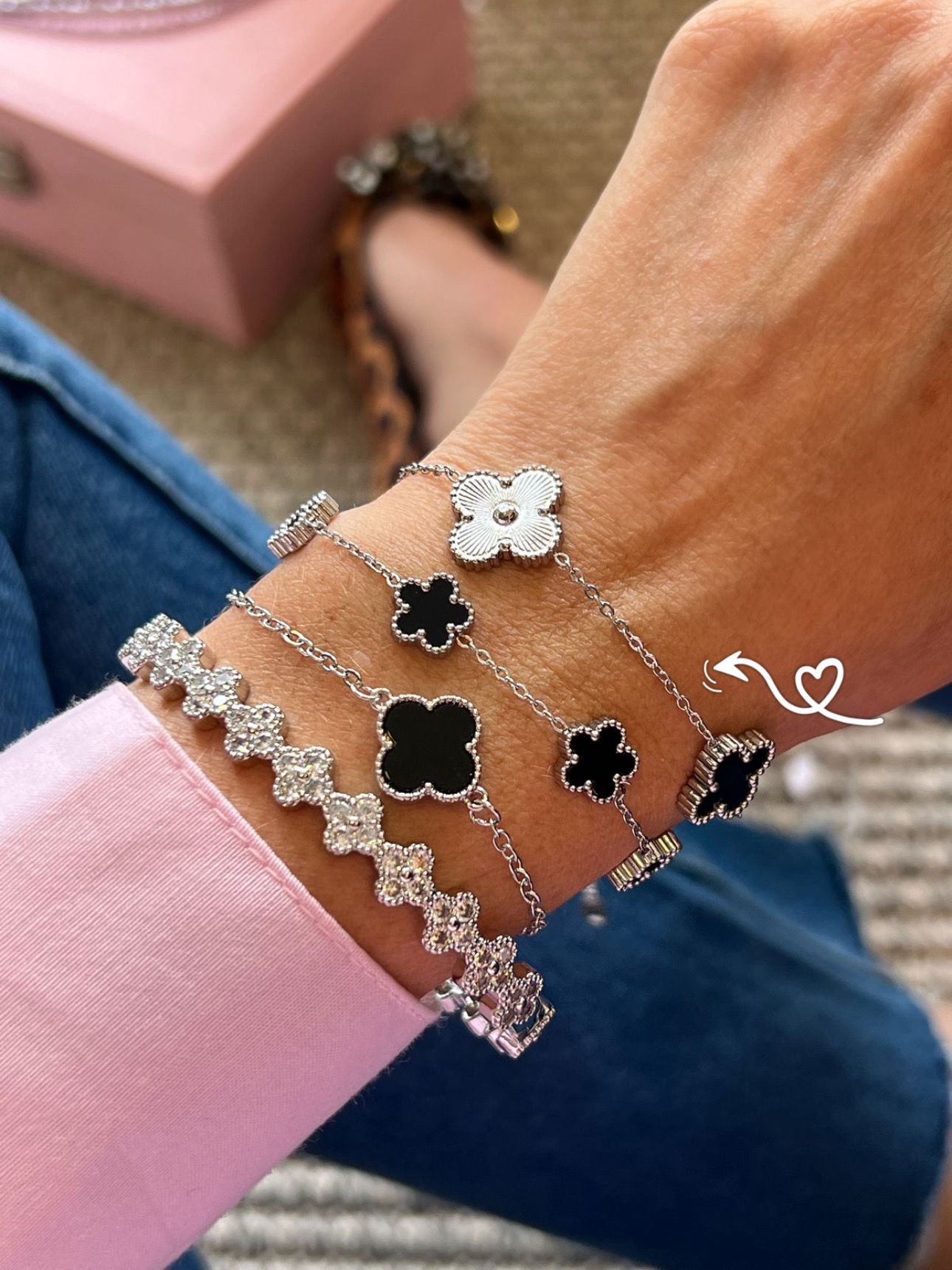 Pulseira com Trevo Black e Liso em Banho de Ródio Branco : Pul310 Facebook X Pinterest WhatsApp : - + : OK × : 1x R$ 0,00 : R$ 0,00 × : -Pedra: -Corrente: -Cor: -Banho: Banho de Ródio Branco (Antialérgico) -Garantia: 1 ano Banho e Zircônia
