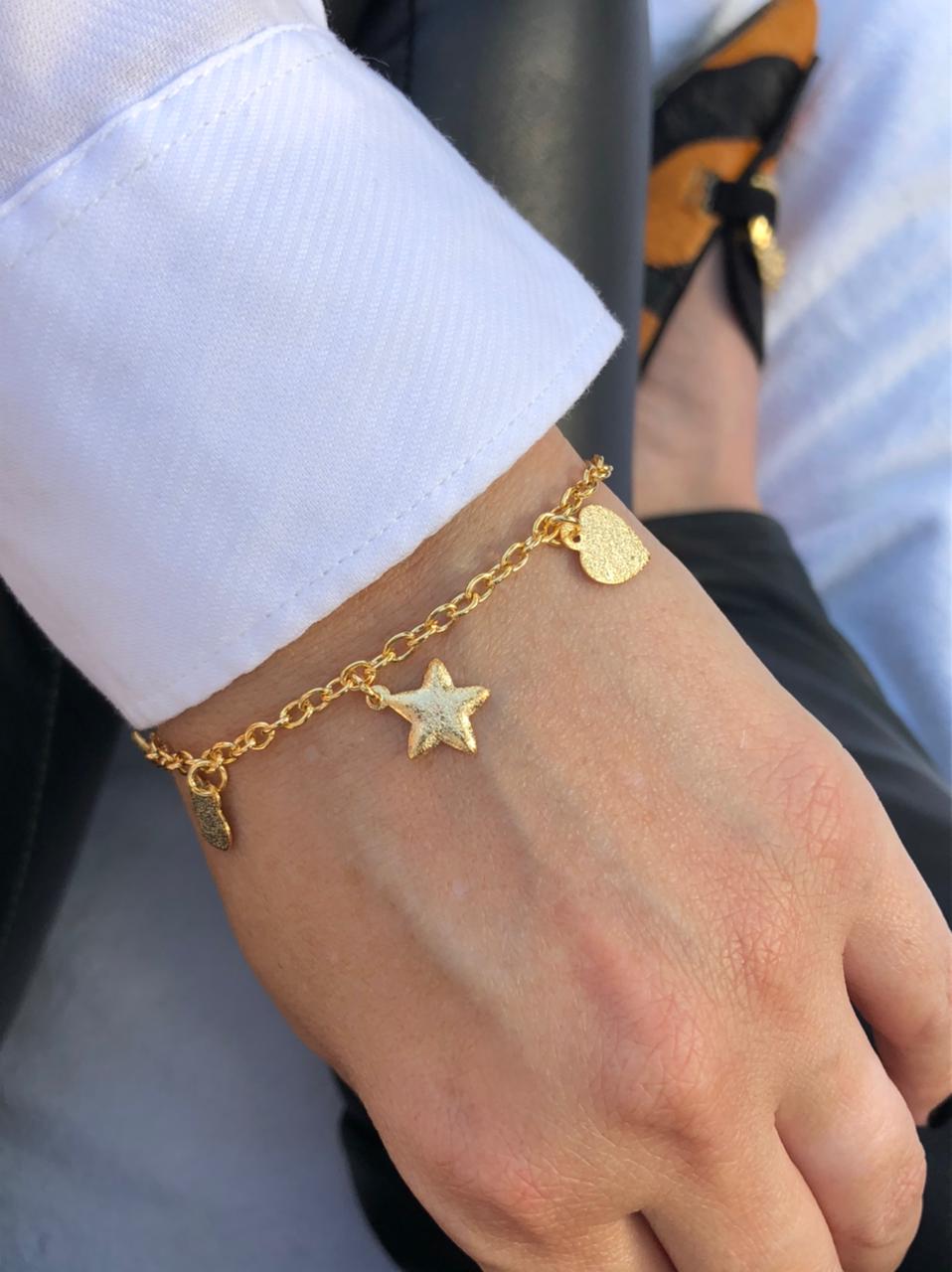 Pulseira Estela e Coração em Banho de Ouro : Pul034 Facebook X Pinterest WhatsApp : - + : OK × : 1x R$ 0,00 : R$ 0,00 × : -Banho: Banho de Ouro 18K com 10 milésimos (Antialérgico) -Garantia: 1 ano Banho