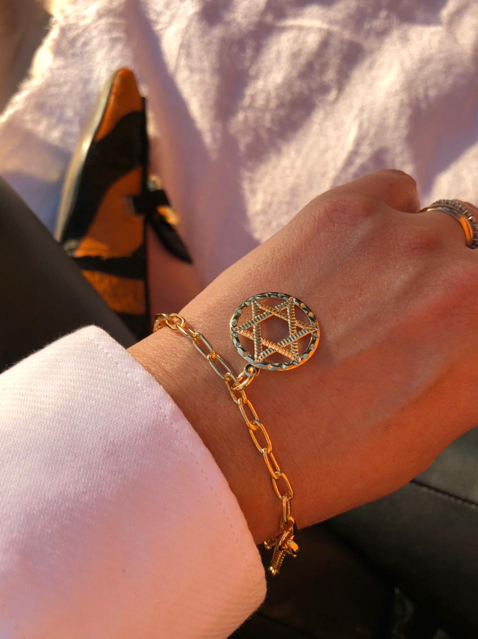 Pulseira Estrela de Davi em Banho de Ouro : Pul05 Facebook X Pinterest WhatsApp : - + : OK × : 1x R$ 0,00 : R$ 0,00 × : -Banho: Banho de Ouro 18K com 10 milésimos (Antialérgico) -Garantia: 1 ano Banho