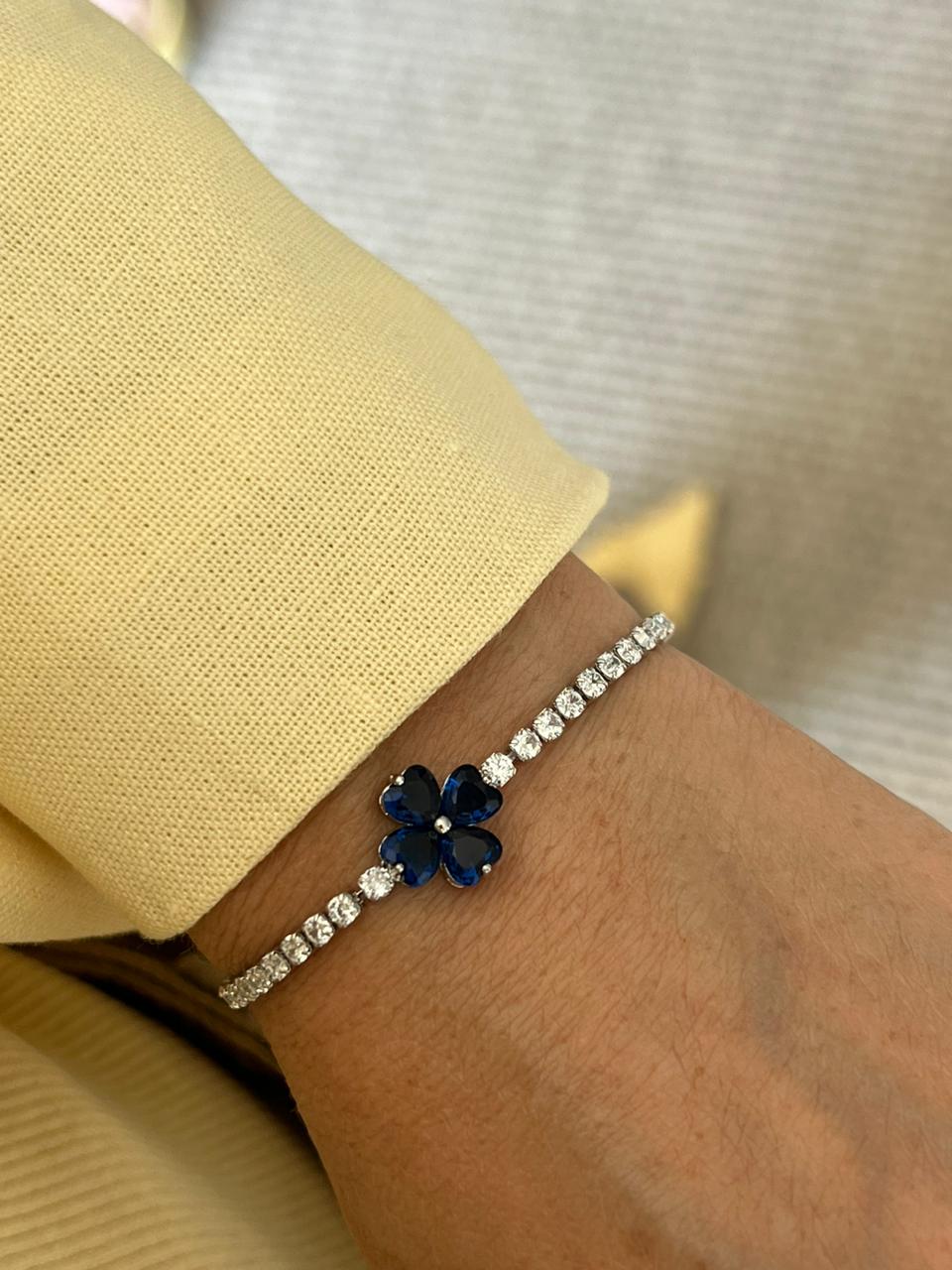 Pulseira Gravatinha Trevo com Zircônia Cristal e Azul em Banho de Ródio Branco : Pul351 Facebook X Pinterest WhatsApp : - + : OK × : 1x R$ 0,00 : R$ 0,00 × : -Pedra: -Cor: -Corrente: -Banho: Banho de Ródio Branco (Antialérgico) -Garantia: 1 ano Banho e Zircônia