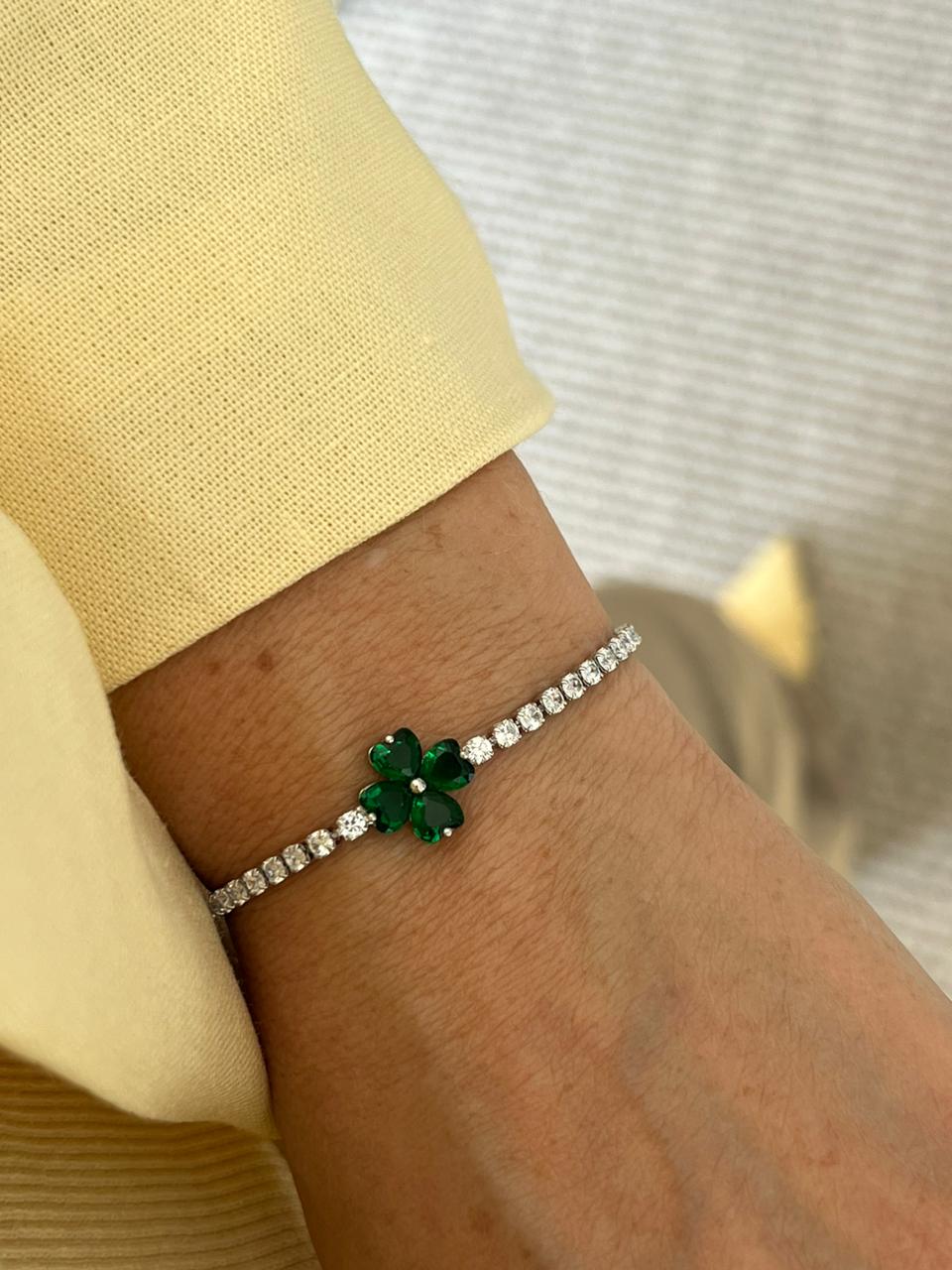 Pulseira Gravatinha Trevo com Zircônia Cristal e Verde em Banho de Ródio Branco : Pul349 Facebook X Pinterest WhatsApp : - + : OK × : 1x R$ 0,00 : R$ 0,00 × : -Pedra: -Cor: -Corrente: -Banho: Banho de Ródio Branco (Antialérgico) -Garantia: 1 ano Banho e Zircônia