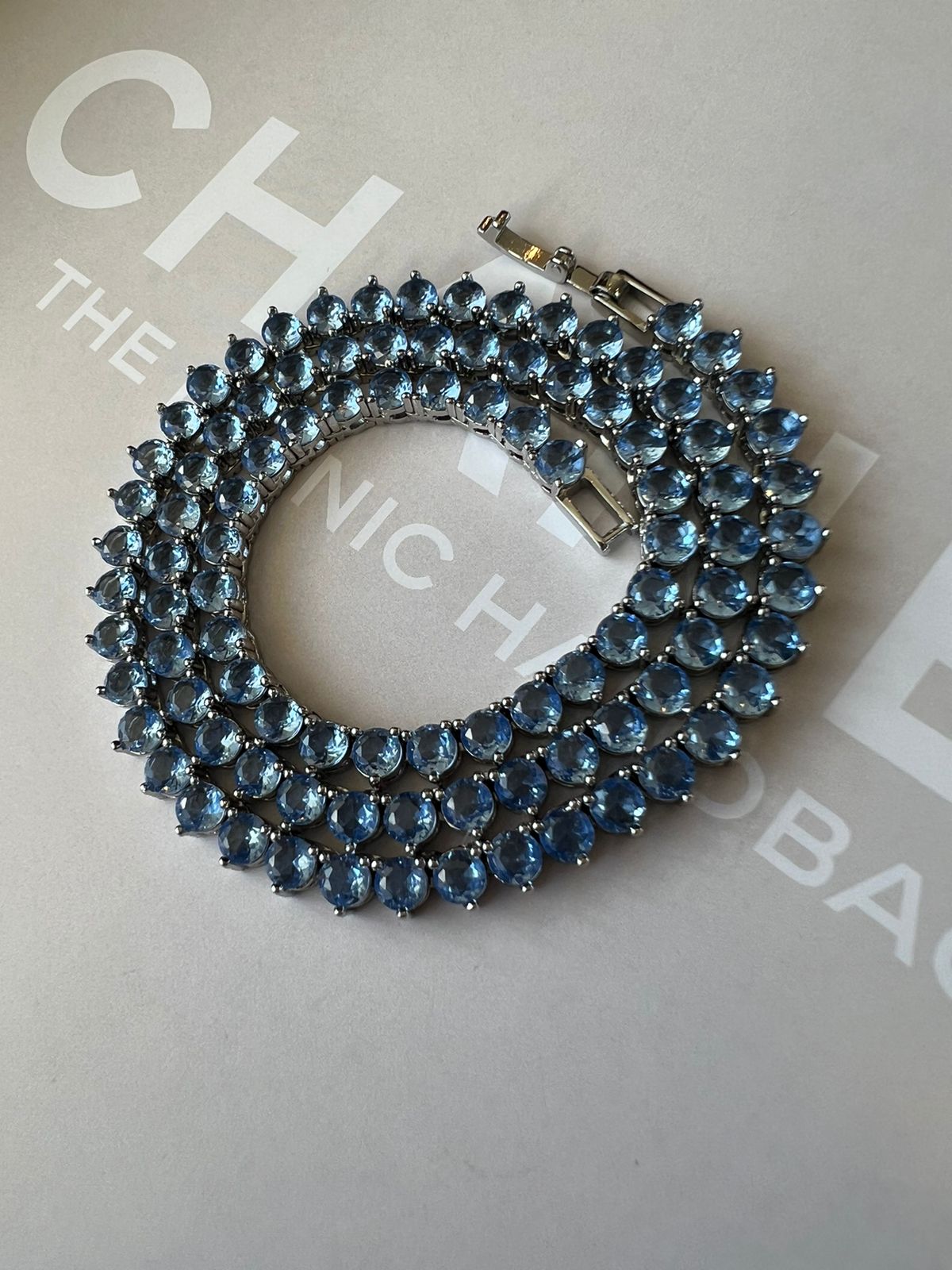 Riviera 3 Pontas com Zircônia Azul (Fecho Joia ) em Banho de Ródio Branco