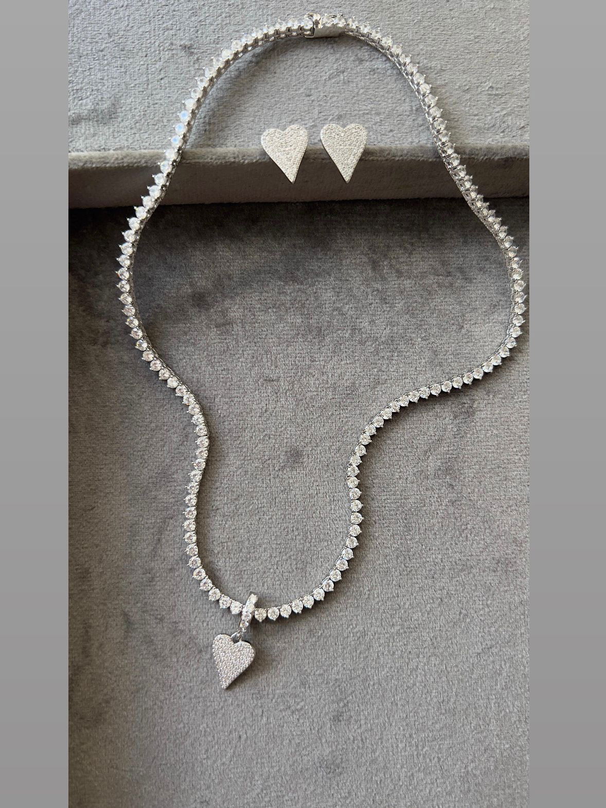 Riviera 3 pontas Zircônia Cristal + Cj de Coração (Fecho Joia) em Banho de Ródio Branco : Cj729 Facebook X Pinterest WhatsApp : - + : OK × : 1x R$ 0,00 : R$ 0,00 × : -Pedra: -Corrente: 43cm (fecho joia) -Cor: -Banho: Banho de Ródio Branco (Antialérgico) -Garantia: 1 ano Banho e Zircônia