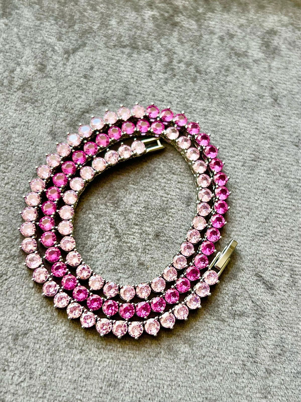 Riviera 3 pontas Zircônia Rosa Degrade 4mm (Fecho Joia) em Banho de Ródio Branco : Choker833 Facebook X Pinterest WhatsApp : - + : OK × : 1x R$ 0,00 : R$ 0,00 × : -Pedra: -Corrente: 43cm -Cor: -Banho: Banho de Ródio Branco (Antialérgico) -Garantia: 1 ano Banho e Zircônia