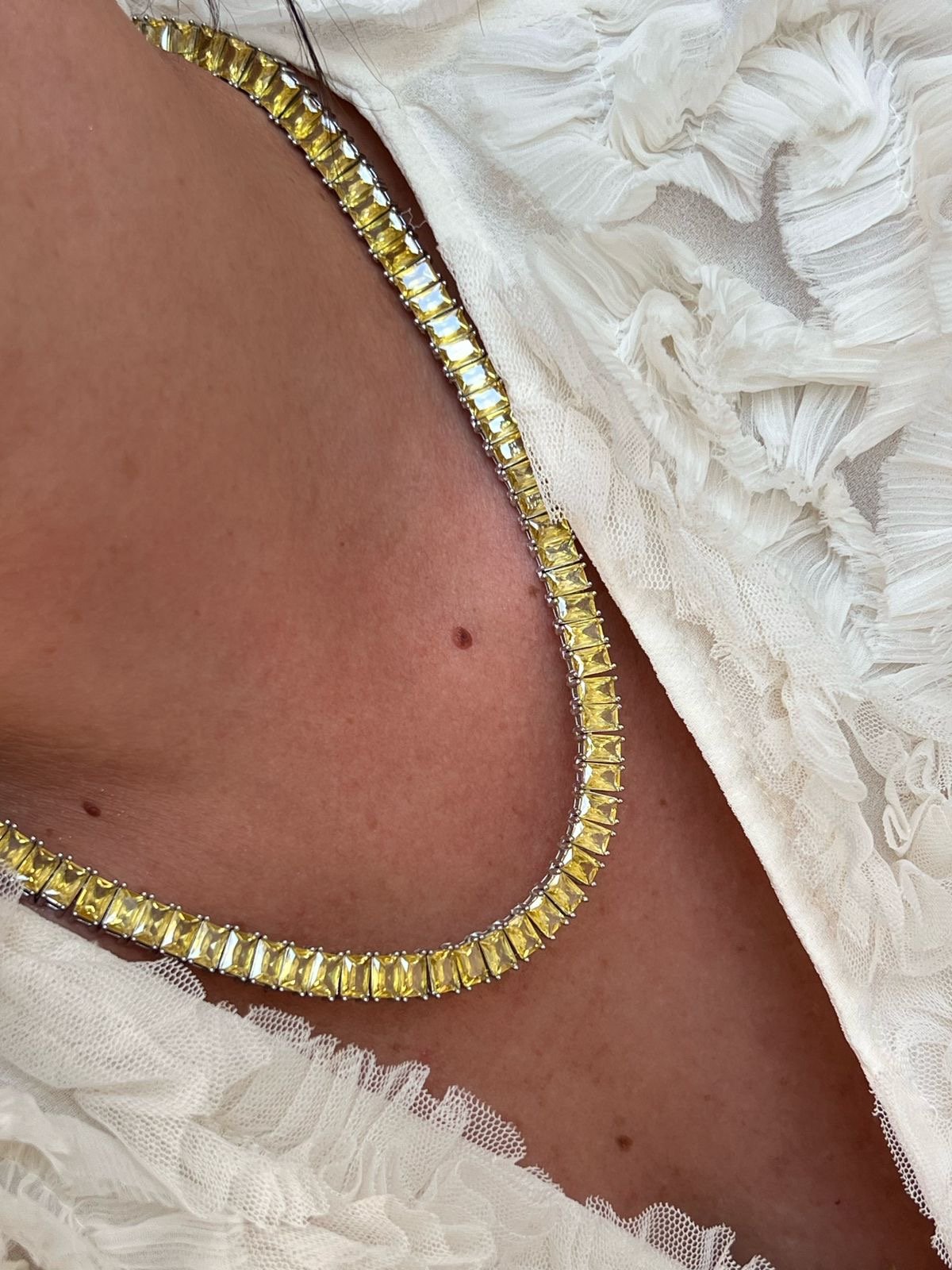 Riviera Baguete com Zircônia Citrino (Fecho joia) em Banho de Ródio Branco : Choker807 Facebook X Pinterest WhatsApp : - + : OK × : 1x R$ 0,00 : R$ 0,00 × : -Pedra: -Corrente: 42cm (fecho joia ) -Cor: -Banho: Banho de Ródio Branco (Antialérgico) -Garantia: 1 ano Banho e Zircônia